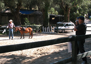 The last two weeks at The Silva Project were full. Horse wise I did do some more riding in the training rink...there really isn't anywhere else to ride. I enjoyed riding the horse Inde and since his corral is right by the guest house where I live, we were already friends. I feed him in the morning as I head down to the stable and stop and talk to him as I go by during the day.He reminds me of a horse I had when I taught at a summer camp on Big Bear Lake near Los Angeles. Same pinto coloring and same wonderful responsiveness that makes riding fun. He could learn neck reining easy!